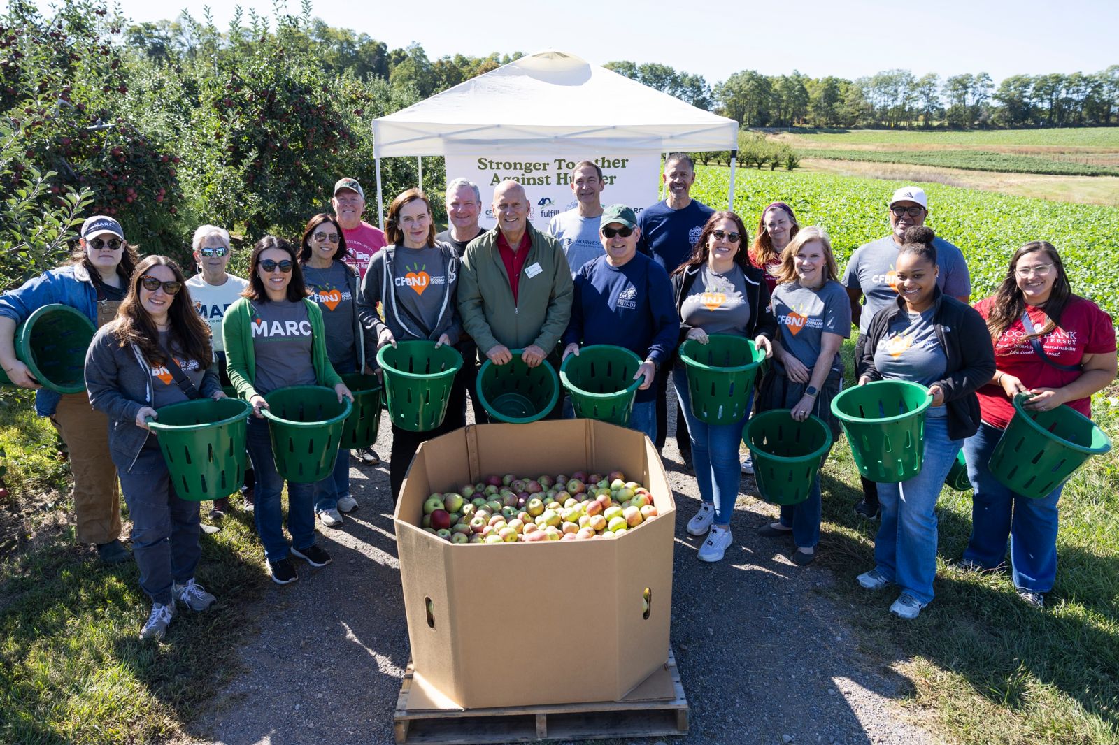 The event brought together partners and state officials including New Jersey Assembly Speaker Craig J. Coughlin, New Jersey Secretary of Agriculture Edward D. Wengryn, New Jersey Office of the Food Security Advocate Executive Director Mark Dinglasan, Assemblyman Erik Peterson (R-Hunterdon) and the leaders of all five food banks – Community FoodBank of New Jersey, Food Bank of South Jersey, Fulfill, Mercer Street Friends and Norwescap – to harvest apples and load the produce onto food bank trucks.