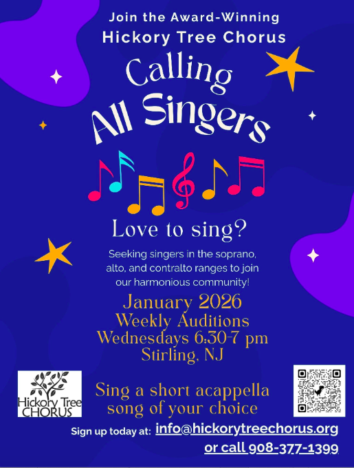 If you are interested in joining us, please sign up by emailing info@hickorytreechorus.org or calling 908-377-1399. We look forward to hearing from you and sharing our love of singing together.