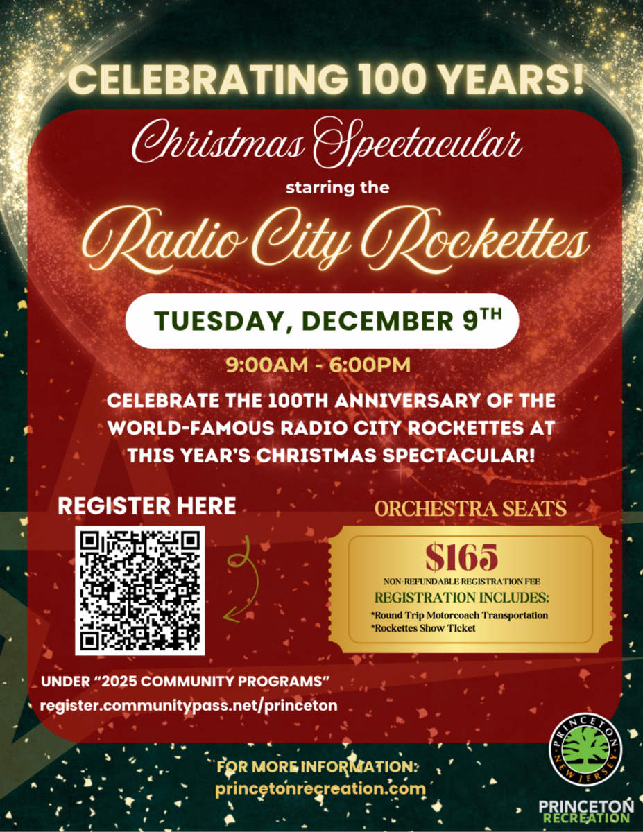 Join Princeton Recreation for a magical holiday trip to NYC to see the Radio City Christmas Spectacular on Tuesday, December 9th! ????