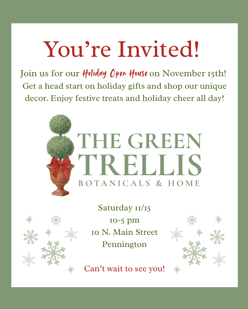 Holiday Open House @The Green Trellis in Pennington Nov 15