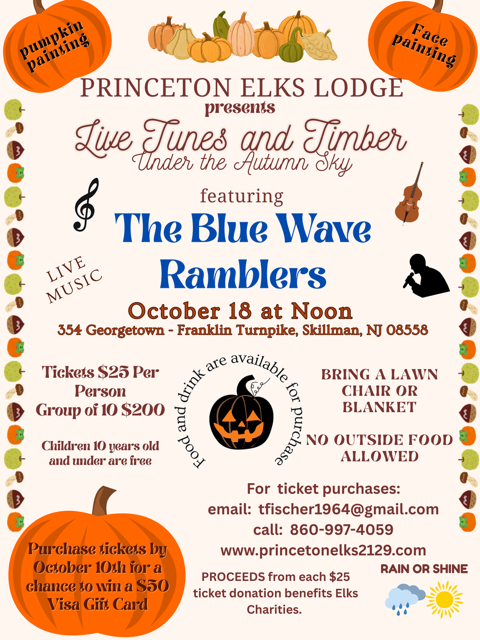 Princeton Elks Lodge Presents Live Tunes and Timber Oct 18
