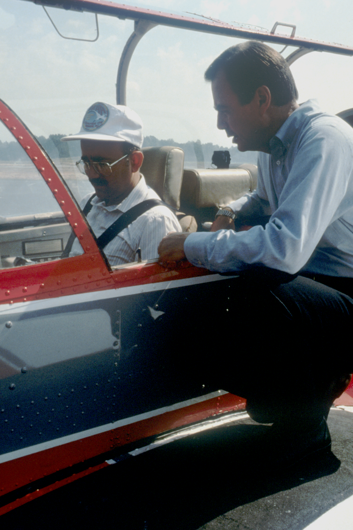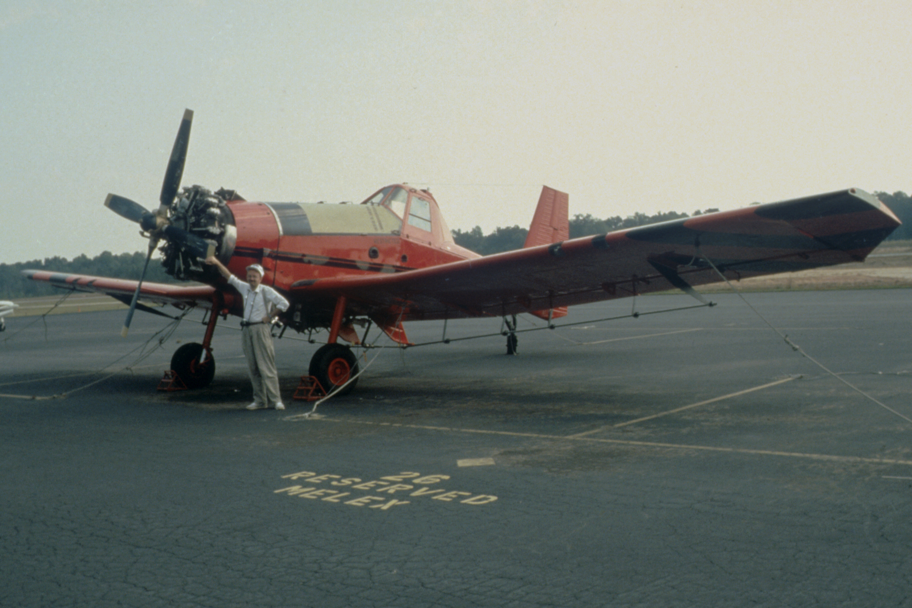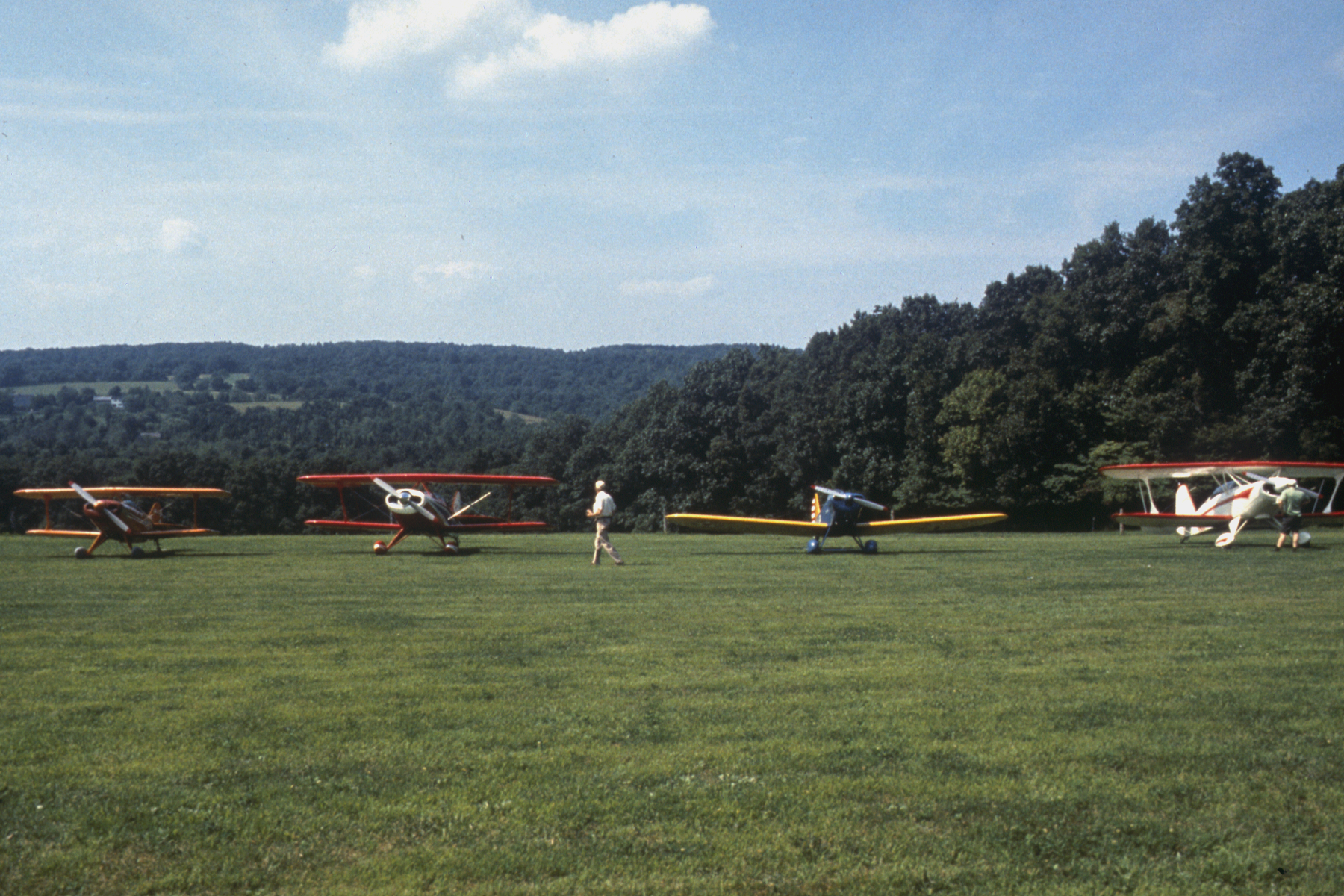 279. Harry Askey explaining some of the details of his 450 Stearman to admirers at Martin State Airport, Baltimore, MD.