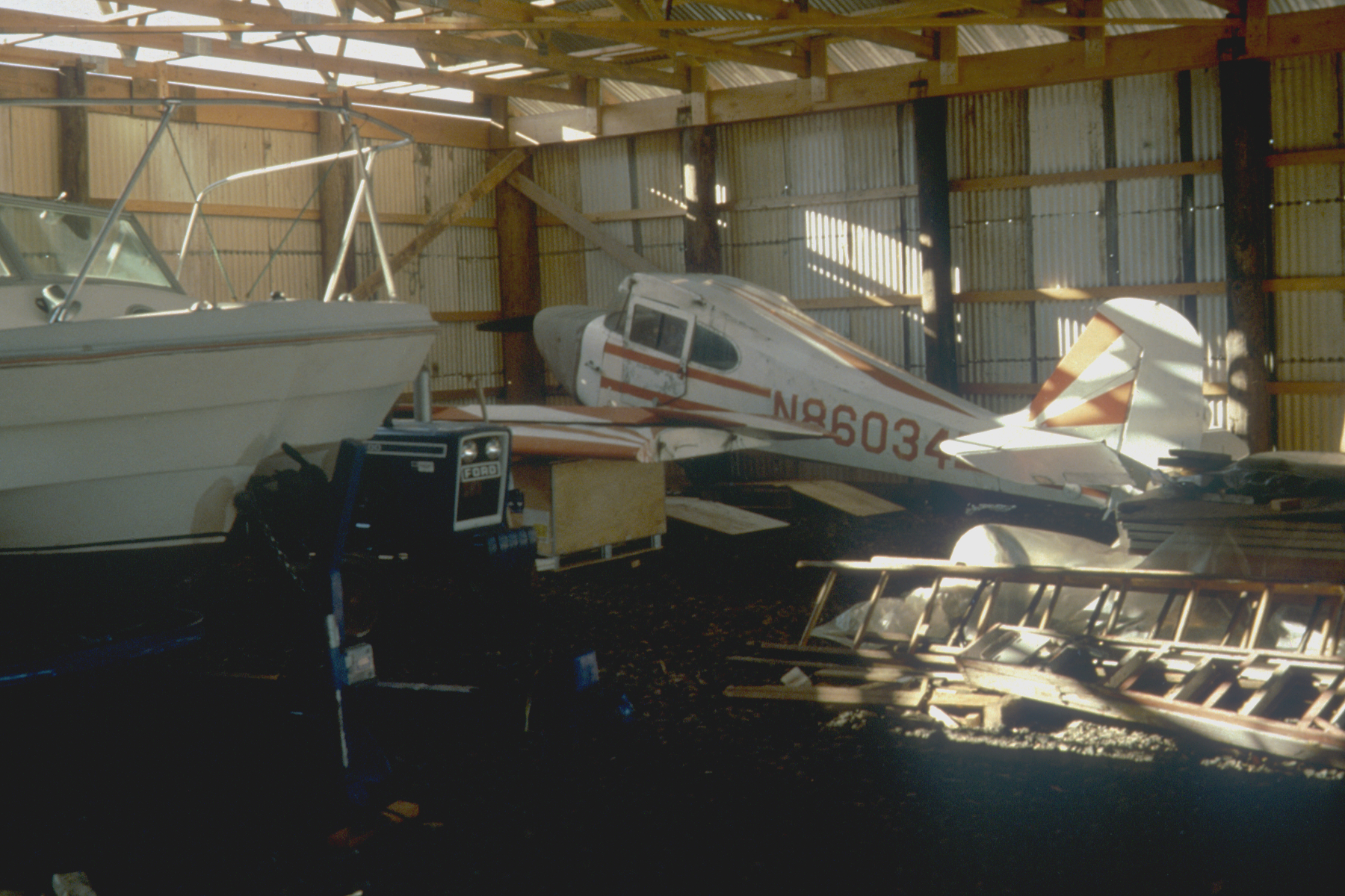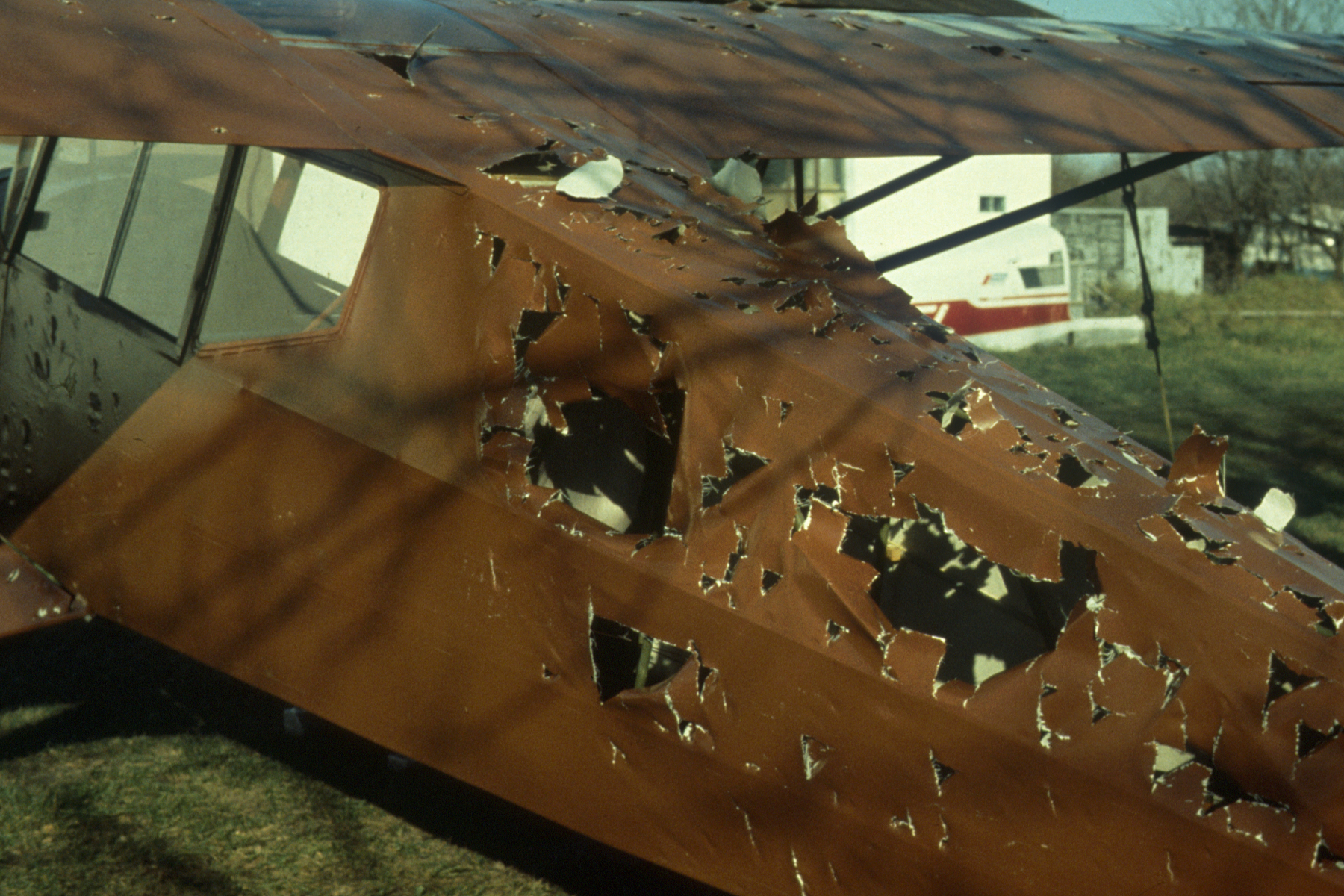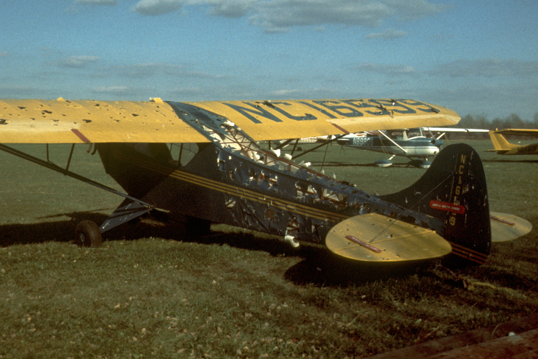 25. The 1976 hailstorm severely damaged most of the planes at Twin Pine. This is Bill Marx’s Aeronca L-3.