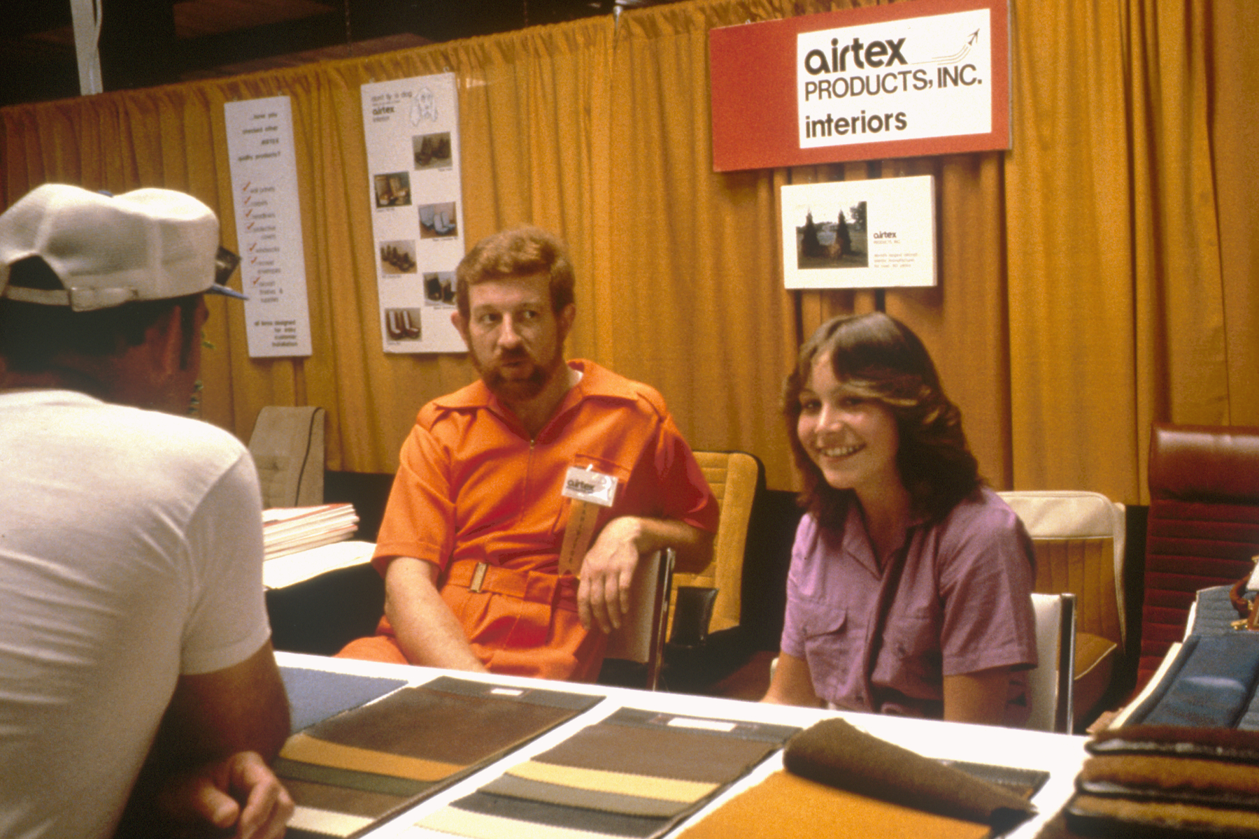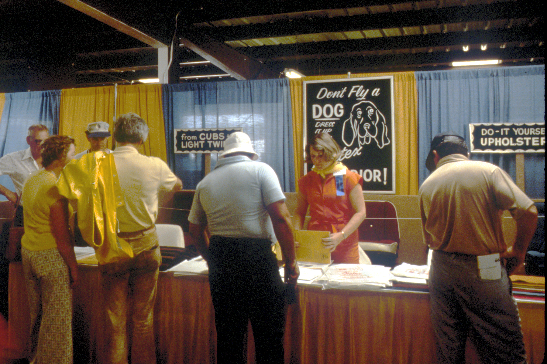 38. Carol Stretch manned the Airtex display at Oshkosh. Members Dick Behrman and Joe Wieger are in the background at the left.