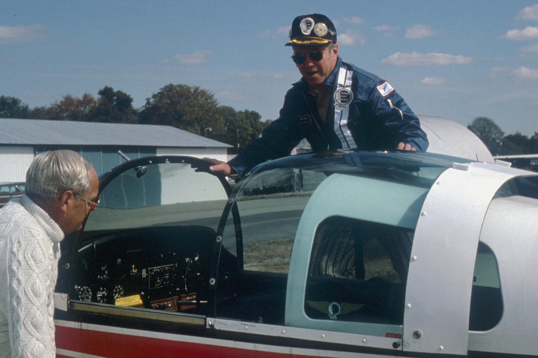 54. John Prokop is about to depart the open house at Willow Grove NAS. That’s Wayne Hayes in the yellos Stinson jacket.