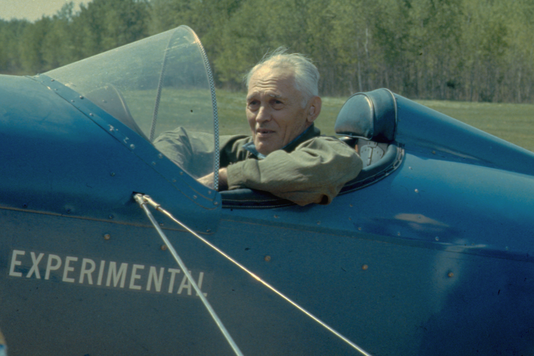 56. John Prokop was the oldest active member of the chapter. Here he is in the FlyBaby at Twin Pine.