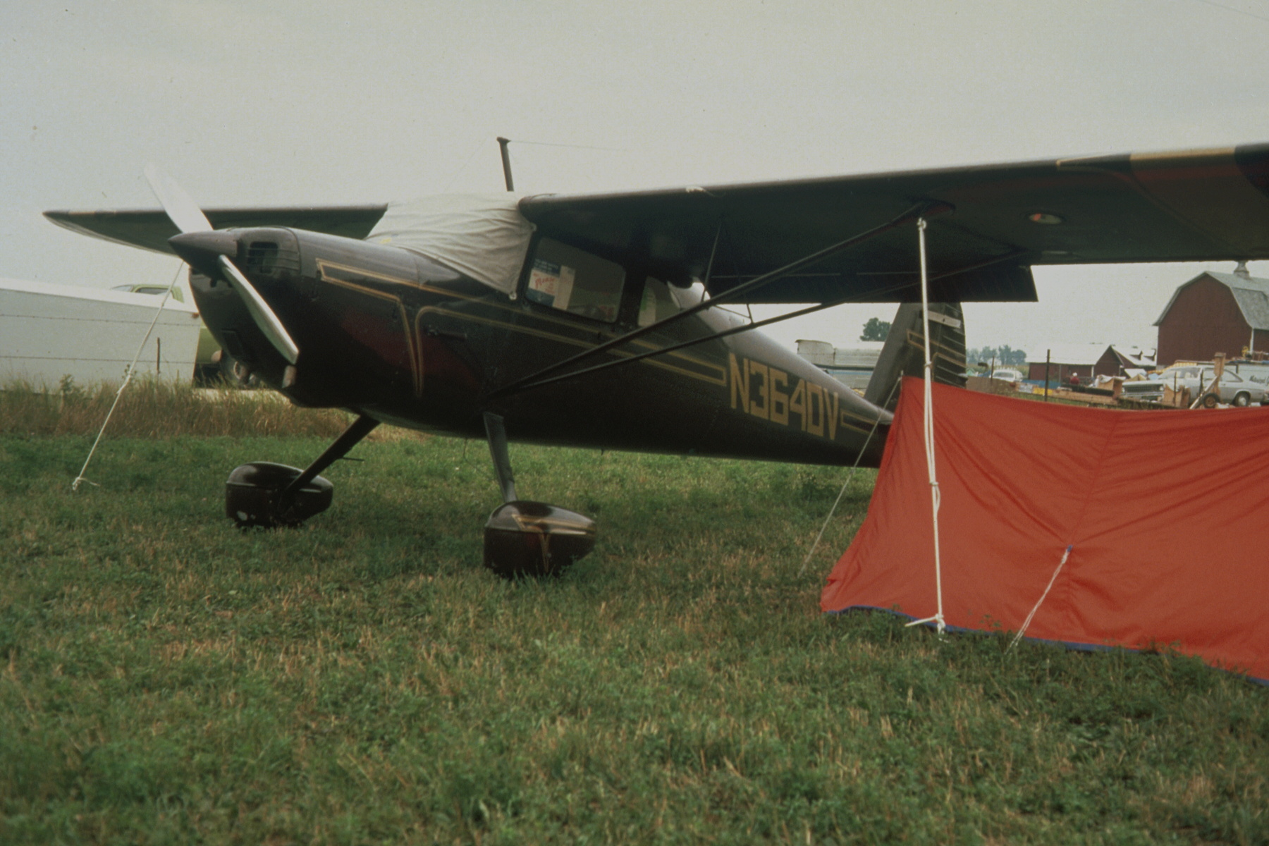 78. Wayne Choper and son camped under their Cessna 180 at Oshkosh.
