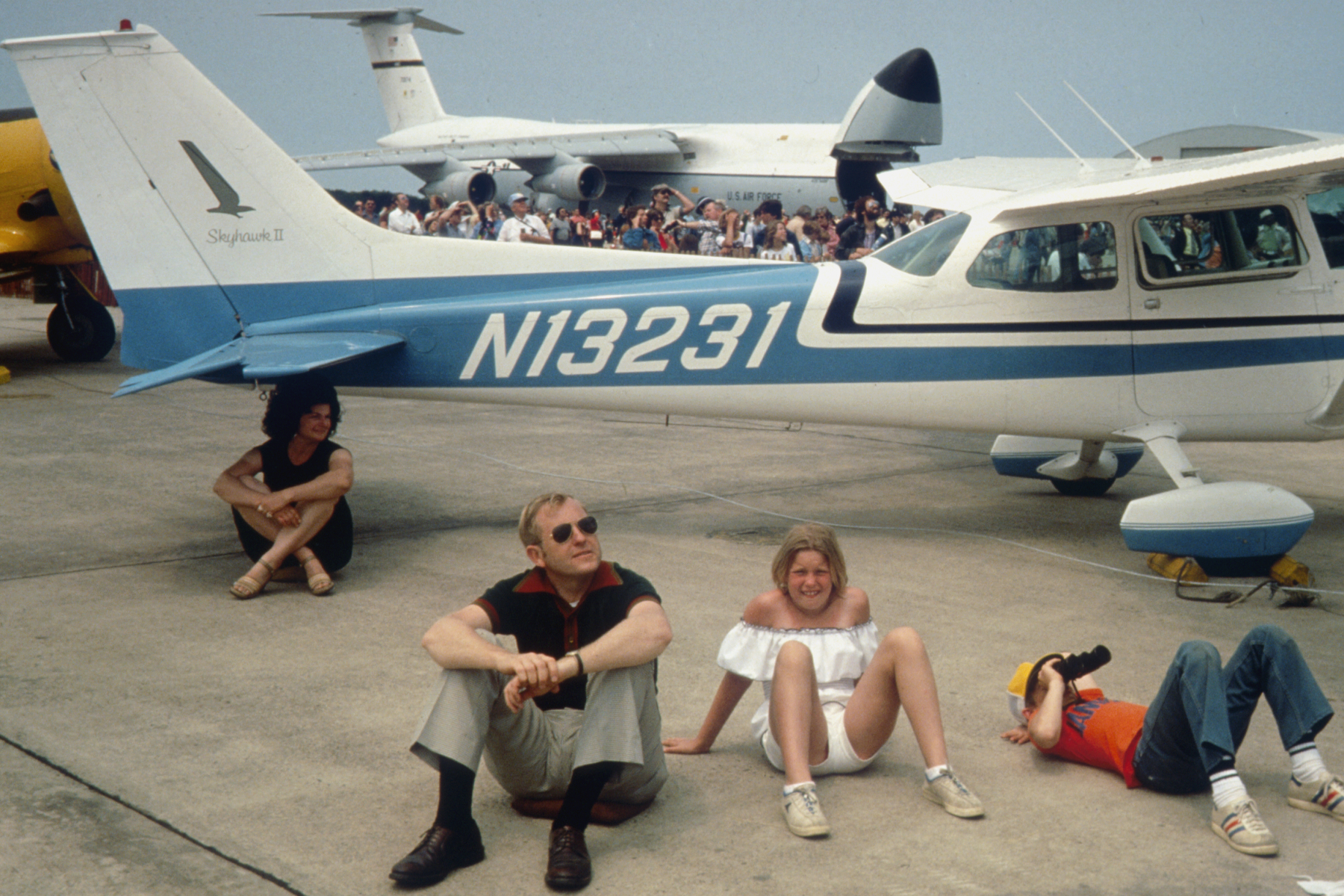 286. Connie and Aaron Kellner spend a few minutes with friends while Dave Kellner prepares his Stinson 108-2 for departure from a McGuire AFB open house.