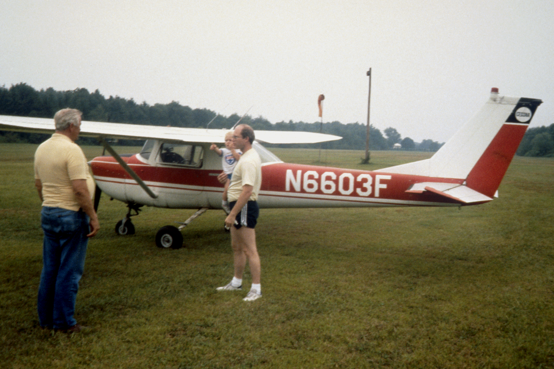 83. Charlie Dekle and Del Teeter look over the Cessna 150 that Del just purchased.