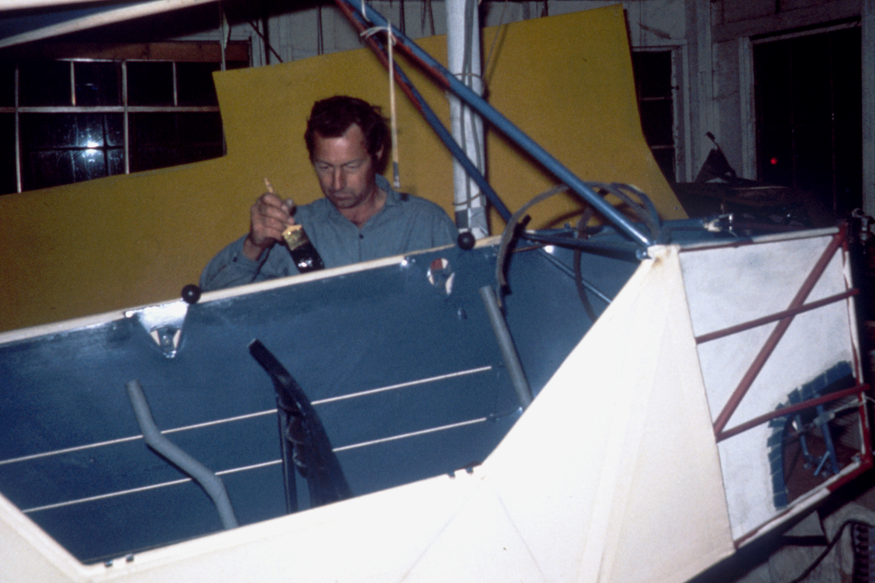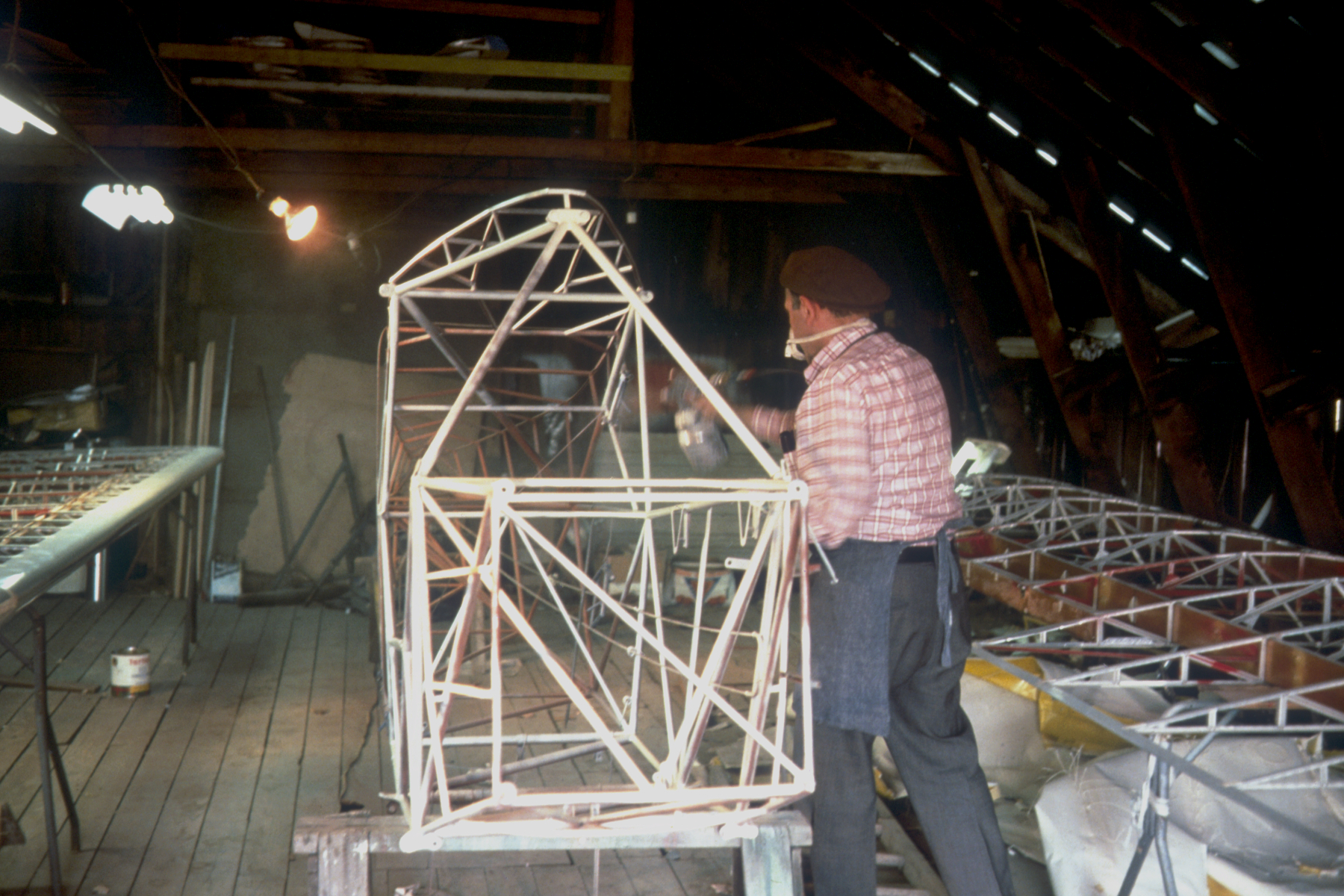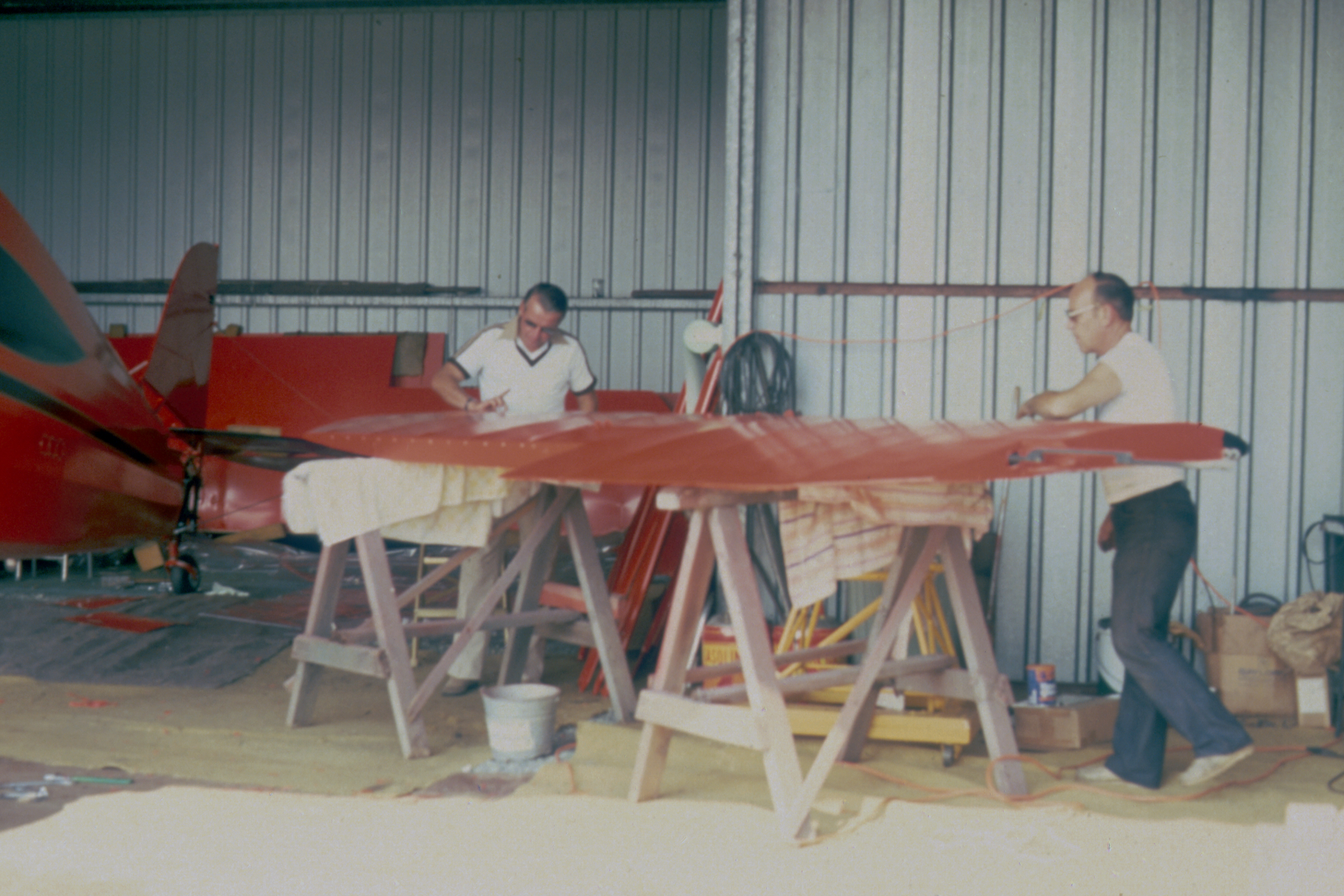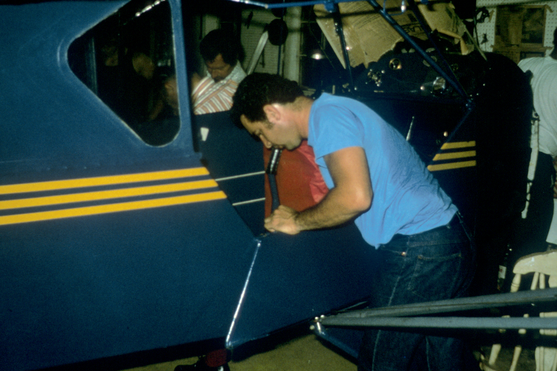 60. Mick Hart inspects the work on Charley Byron’s one-of-a-kind Byroncraft A-1.
