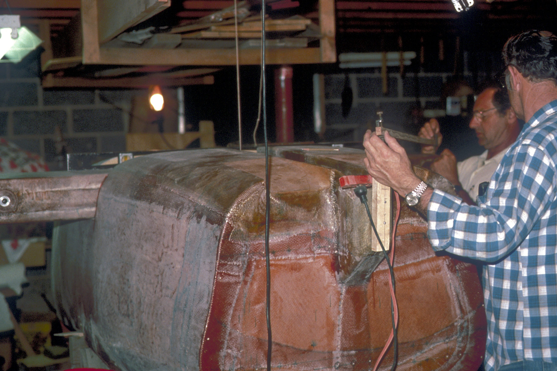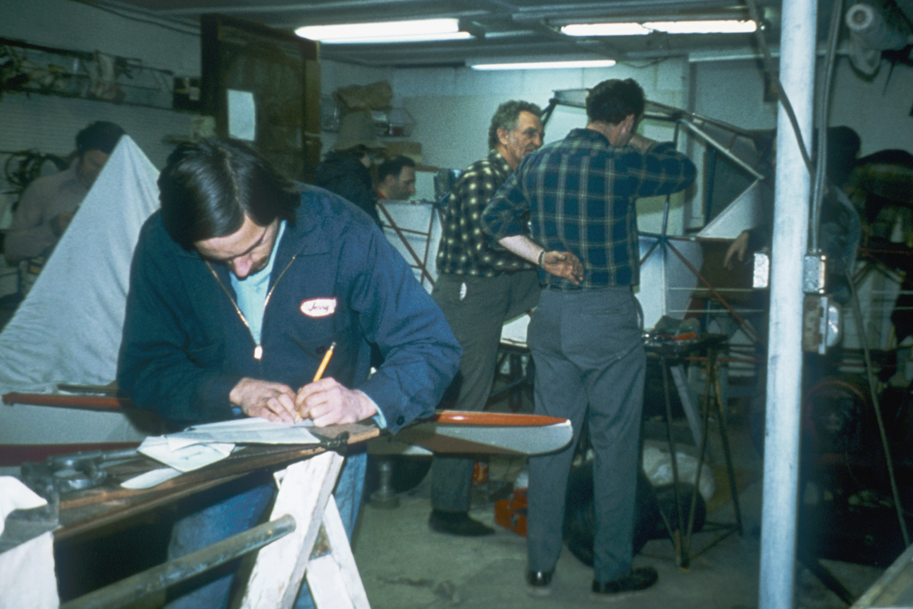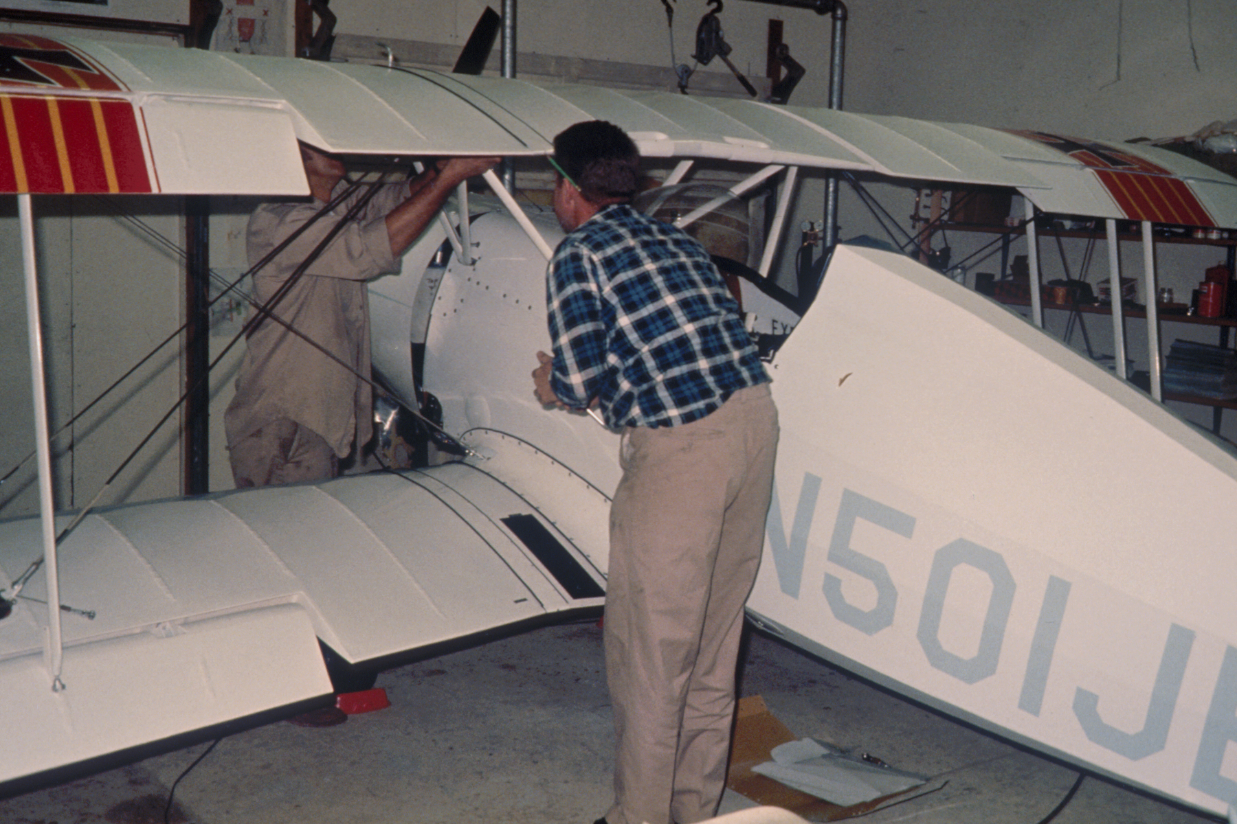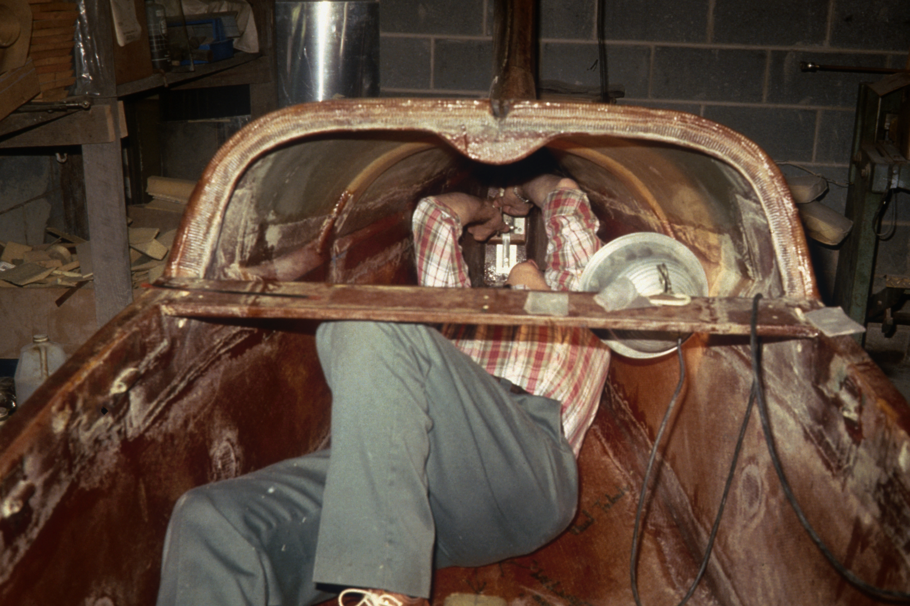 60. Mick Hart inspects the work on Charley Byron’s one-of-a-kind Byroncraft A-1.