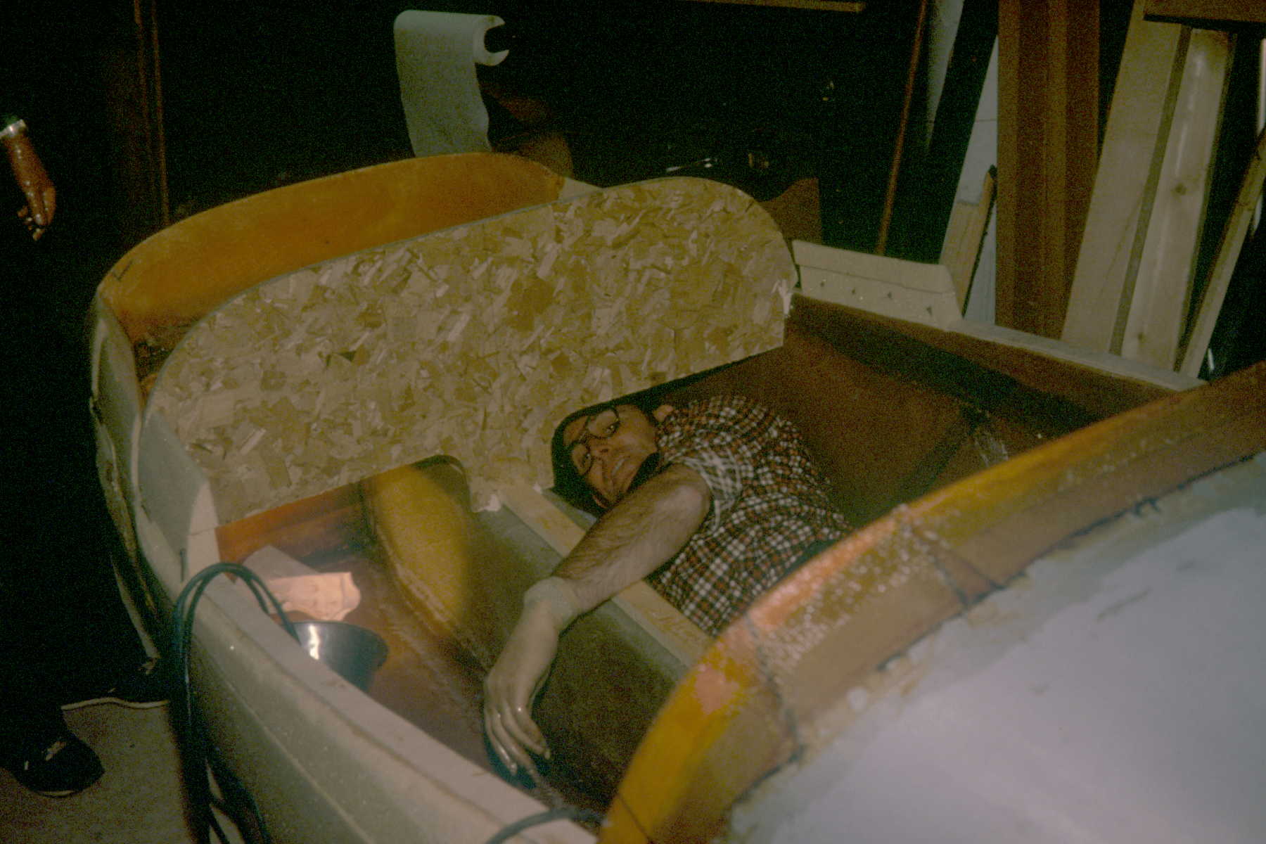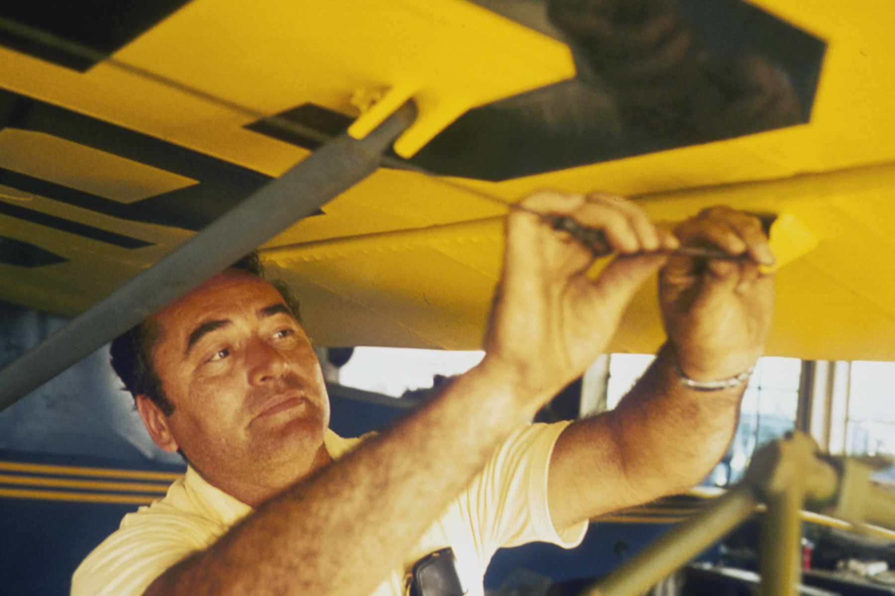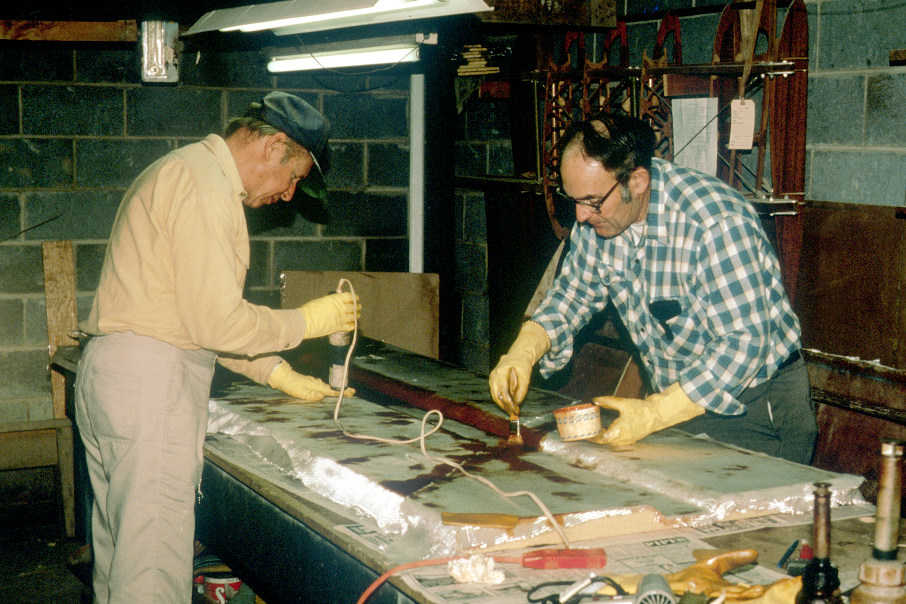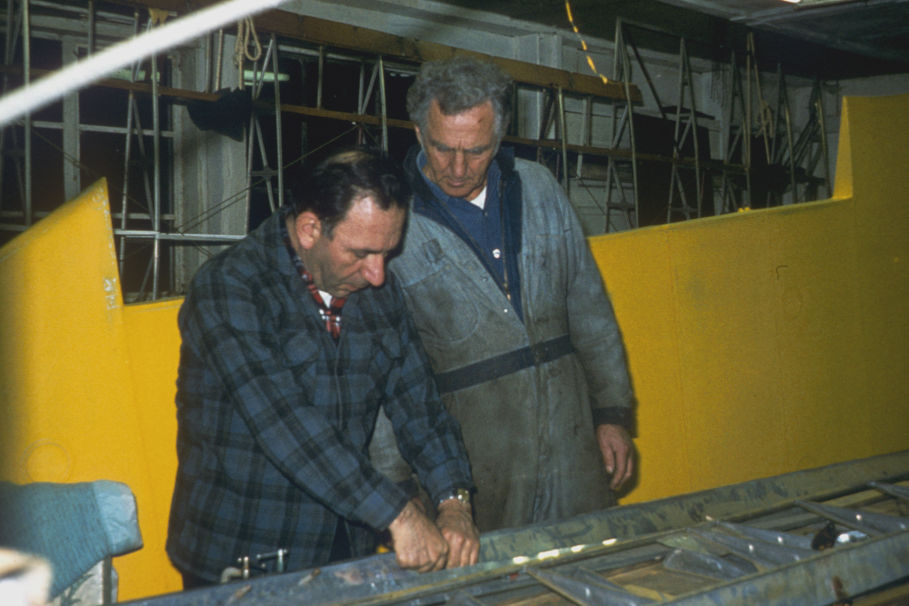 60. Mick Hart inspects the work on Charley Byron’s one-of-a-kind Byroncraft A-1.