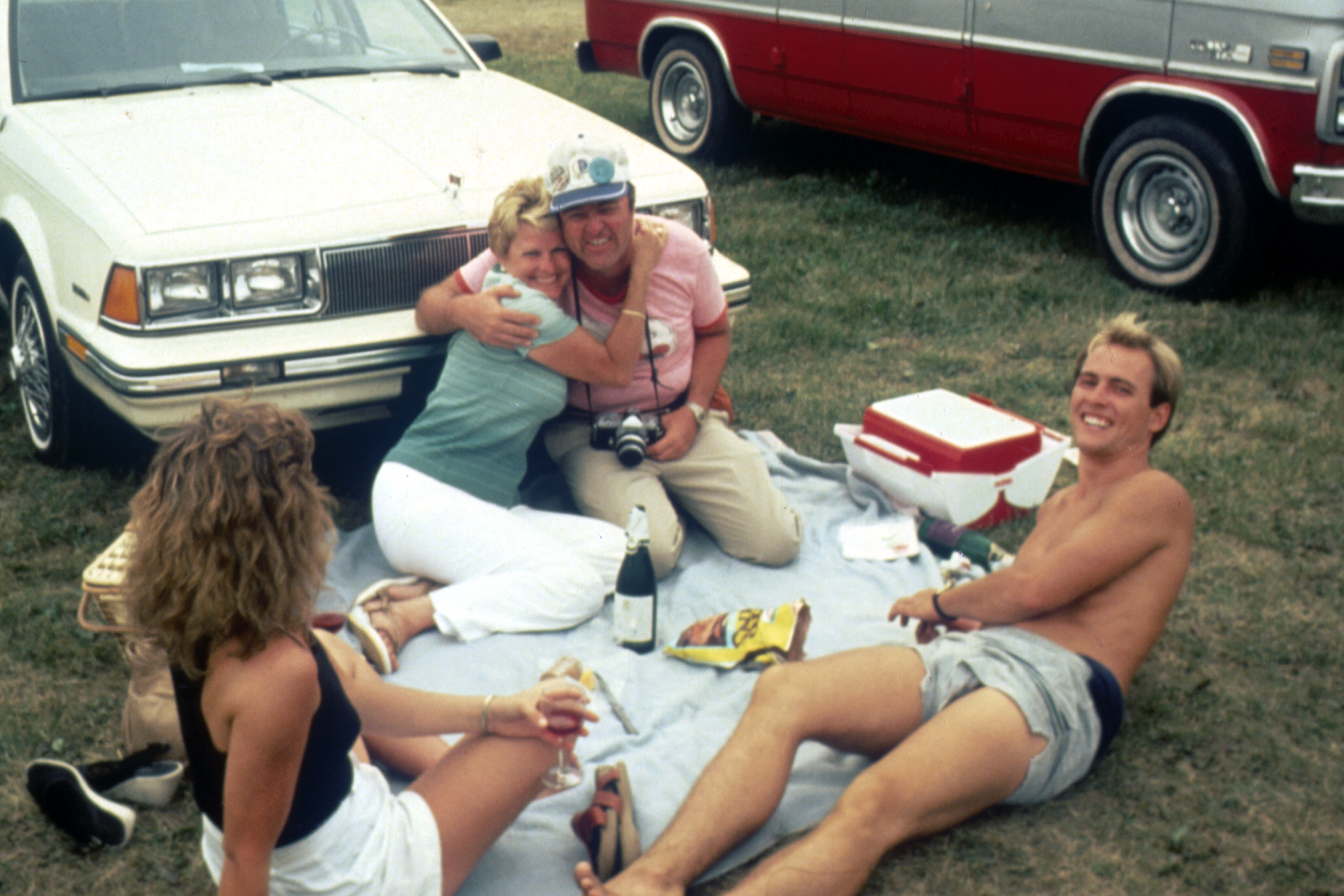 73. Pat Duick sits in the shade while Jerry, Belinda and Andy Duick sun themselves at the 1976 McGuire AFB open house.