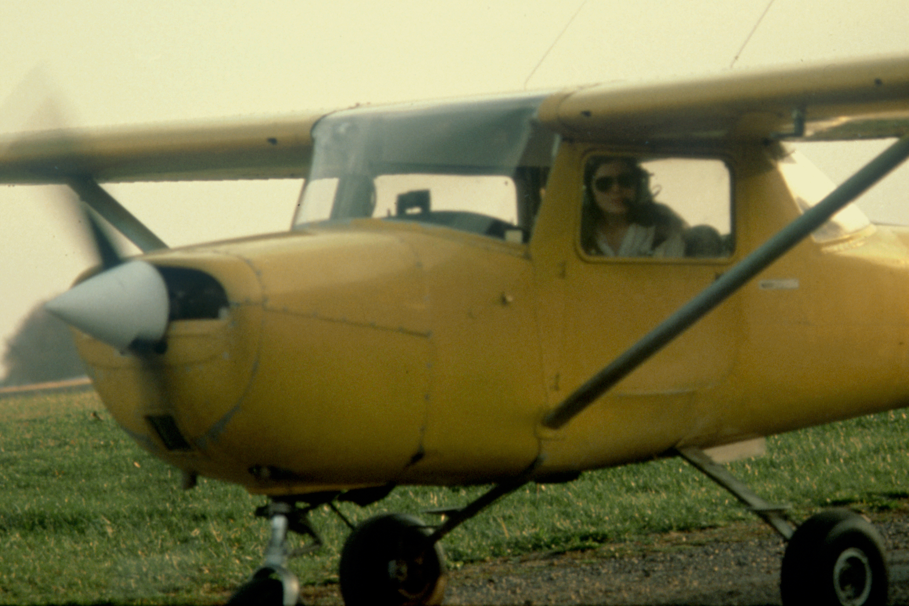 192. Robin White and Lisa Bennett pass over Princeton in their Navion.