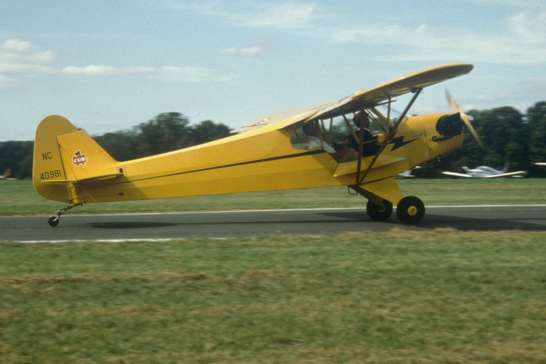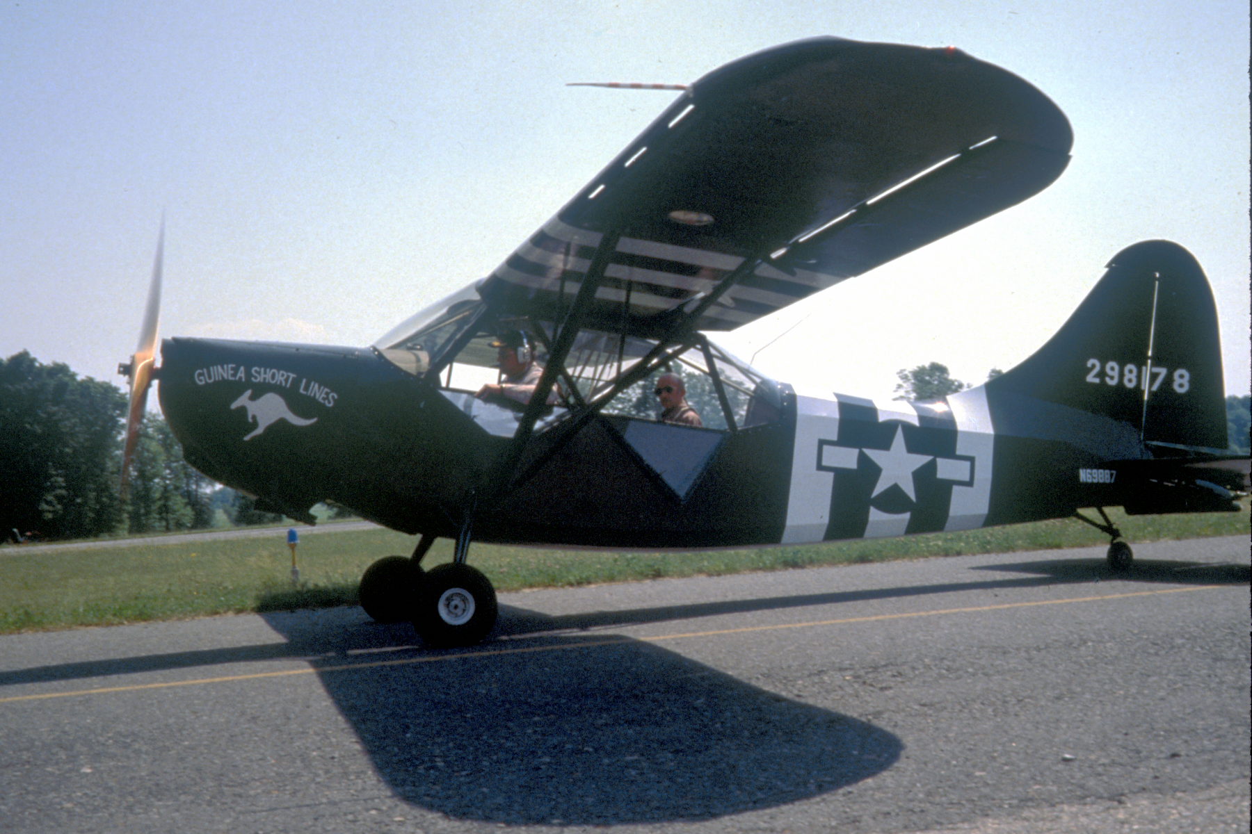 199. This modified Piper J-3 belonged to Aviation Enterprises International, and as such was the first airplane in which Keith Caulton held a financial interest. In the photo the plane is flown by Bryan Lynch at Lakeside Airport in IL.
