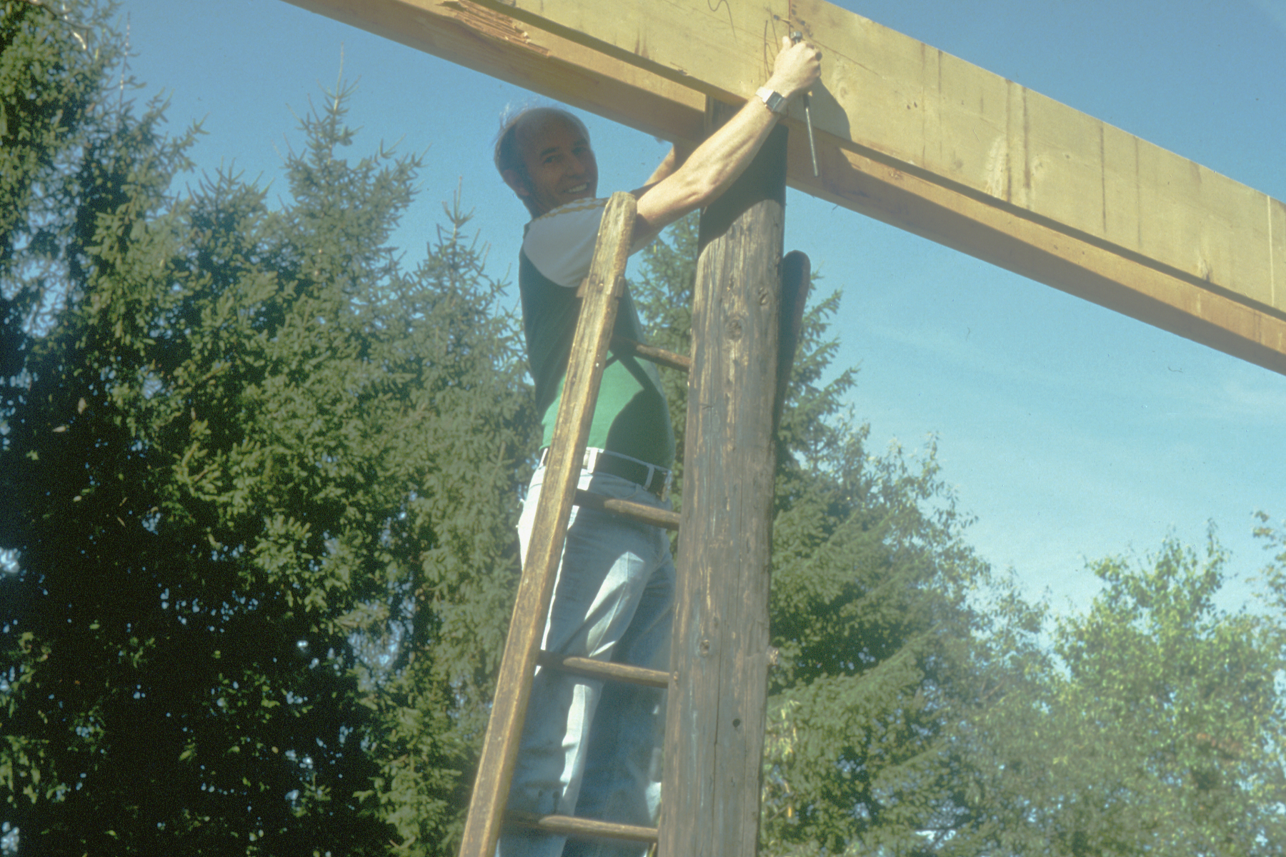 208. Bill Marx installs the lag bolts in the chapter’s pole barn.