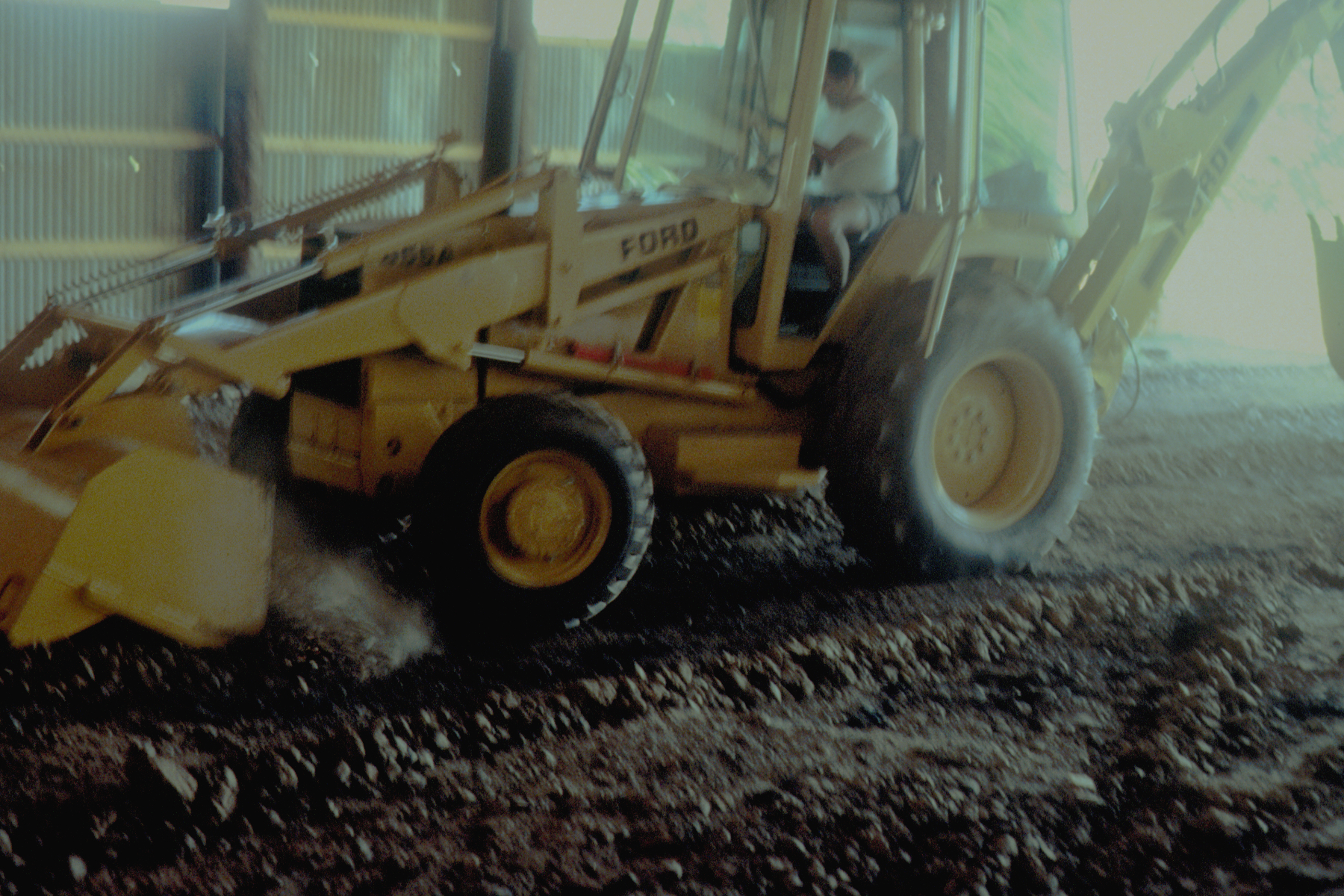 219. Ralph Bodenweiser spreads a gravel base for the pole barn floor.
