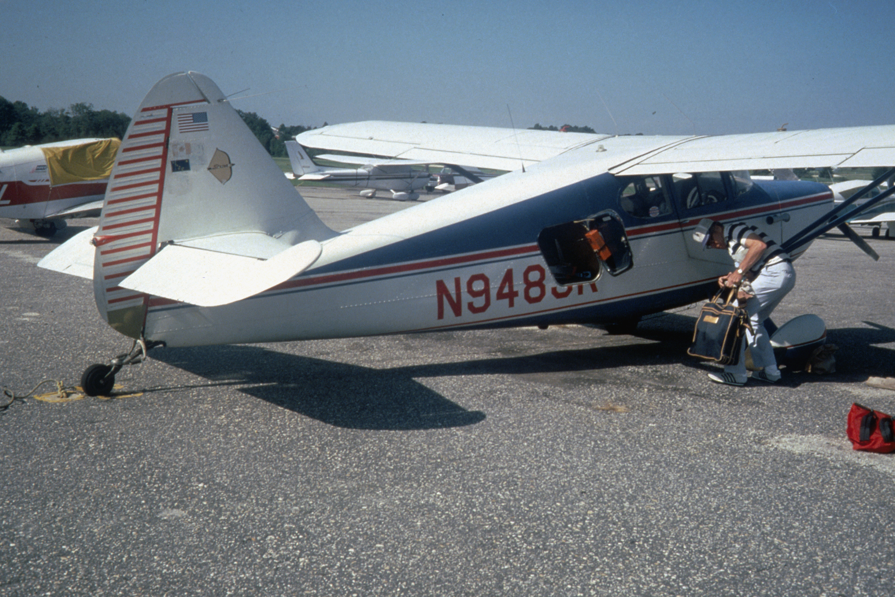 243. Jim Beaumont is loading the Stinson 108-2 at Robbinsville. Jim owned the airplane in partnership with Robin White. Jim’s destination on this flight was Oshkosh.