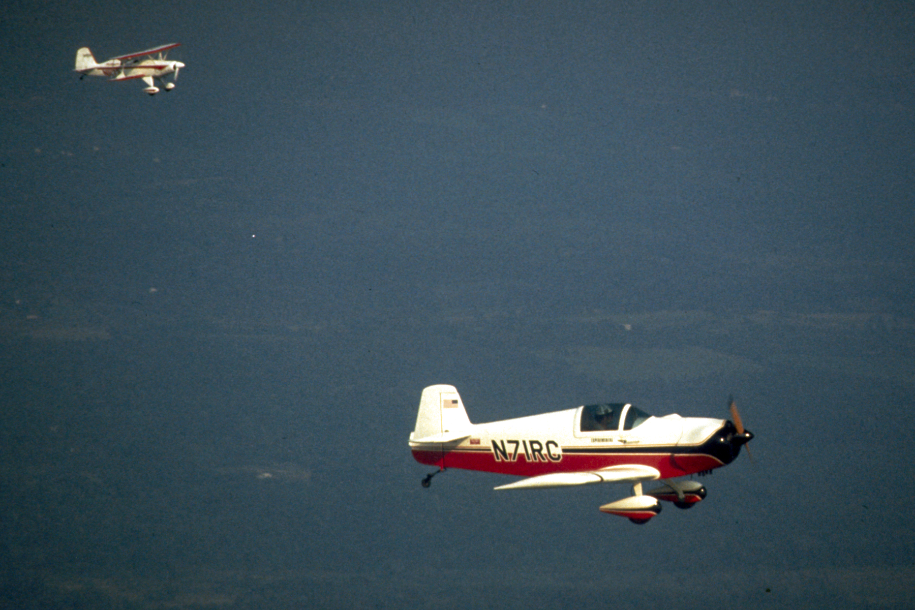 86. Bill Weasner’s Citabria soars over Twin Pine on a beautiful day.