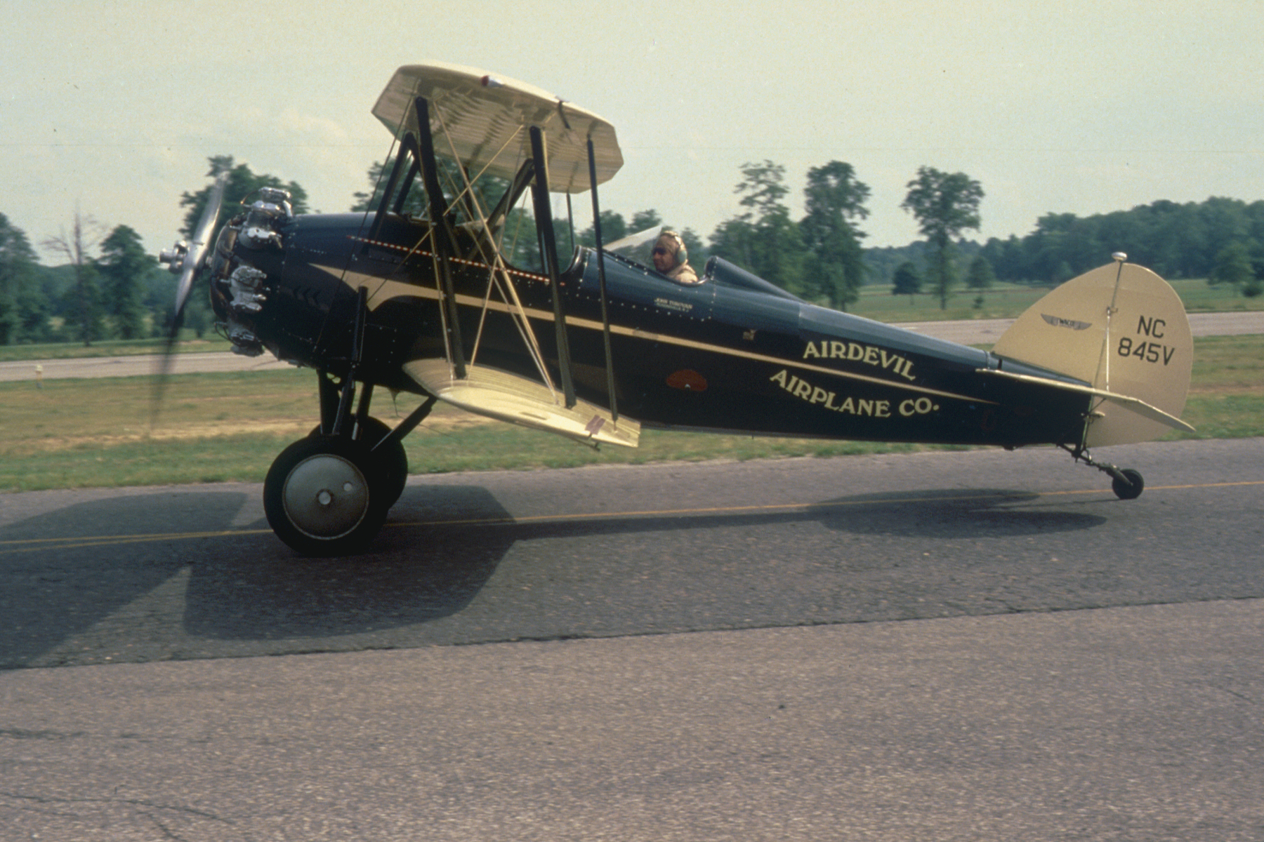 268. John Turgyan pulls his Waco CTO onto the taxiway at Robbinsville.
