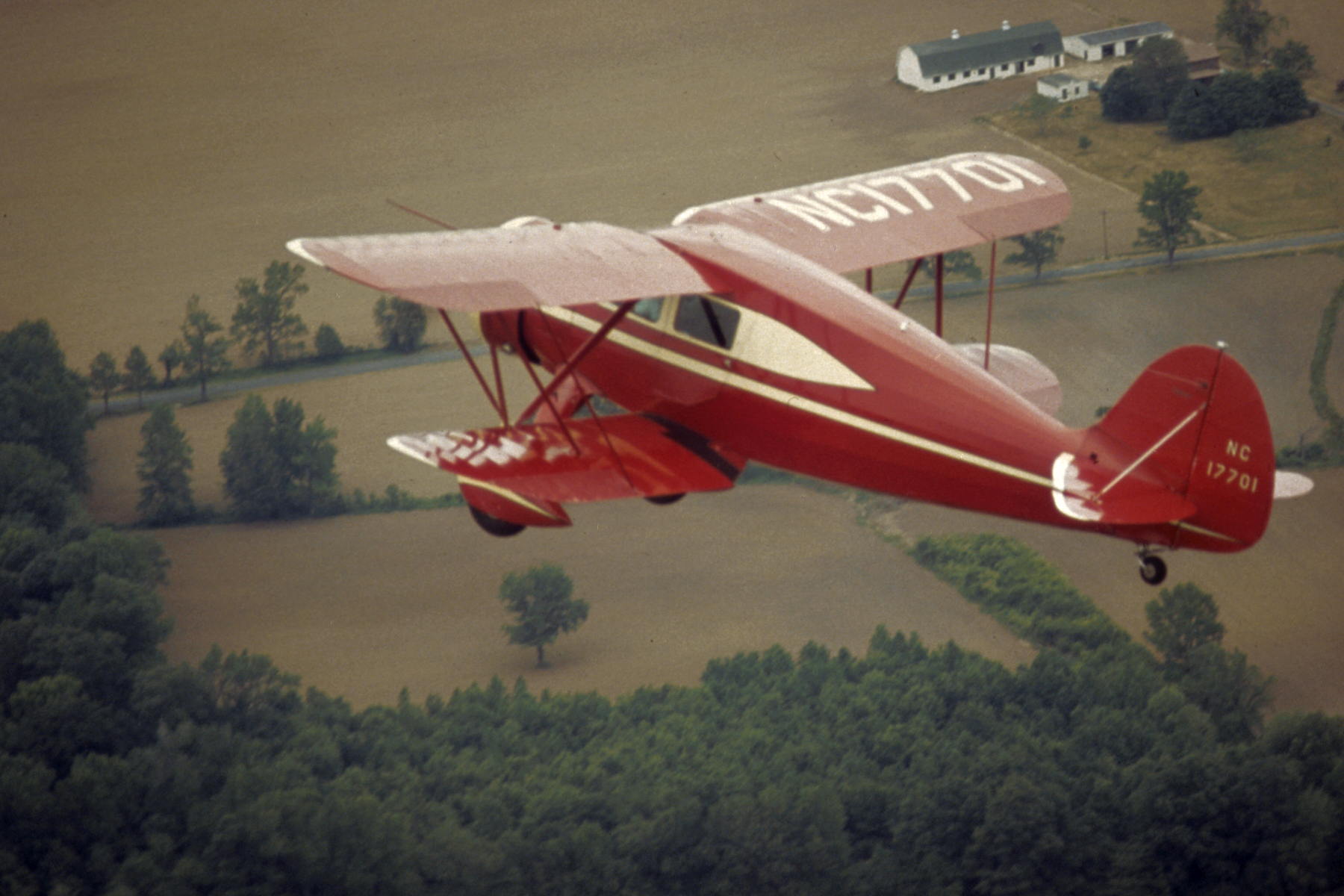240. Harry Askey is airborne in his 450 Stearman, the fourth of four that he owned.