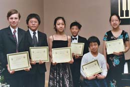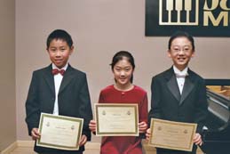 Each year, about 20 finalists are selected from among the many scholarship applicants by a panel of accomplished teachers who listen, anonymously to their audiotapes. At the recent auditions these finalists, ages 7-18, played two contrasting pieces from memory before three prominent adjudicators, Jae-Hyuck Cho, Marc Peloquin and Karen Walwyn who selected the winners. Members, teachers and parents were in the enthusiastic audience.