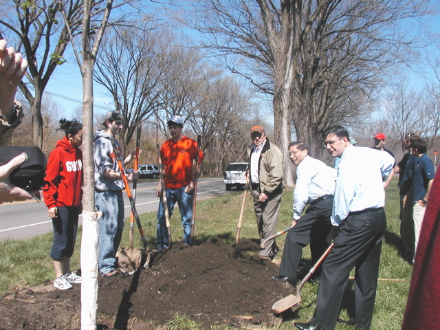Consolloy, PU Manager of Grounds, along with Mayor Hsueh and Brian