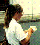 "There are a lot of near misses. It's usually the car's fault. They're just not paying attention. Whenever there's really bad rain and I can hardly see a thing, I say a prayer for the kids because it's so much more dangerous. Crossing Spring Street, Scheetz waved to a woman on the other side of the street. "Hi Ellen!" she called out. "Ellen is a real estate agent with Henderson. She's another person that I would never have met if it weren't for this job," Scheetz explained. "Hi Darlene," Ellen called back. Ellen turned the reporter and said, "Let me just say right now that Darlene is the nicest lady in Princeton, and she's got the toughest job. She's also an expert traffic director. She could be a ballet dancer with those moves!" "A few weeks ago," Scheetz said proudly, "a man wrote a letter about me to the editor of The Princeton Packet. It said that 10 times a week, a ballet goes on for a very special dancer. He was talking about me directing traffic. I couldn't believe how nice he was to do that. I remember that I used to throw him kisses as he drove by. One day he stopped his car, got out, and told me that he loved me. Can you believe that?"